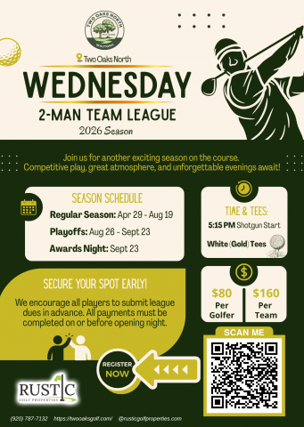 WEDNESDAY 2-MAN TEAM LEAGUE - 2026 SEASON AT TWO OAKS NORTH